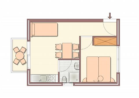 Kochgelegenheit (2 Herdplatten), Kühlschrank |